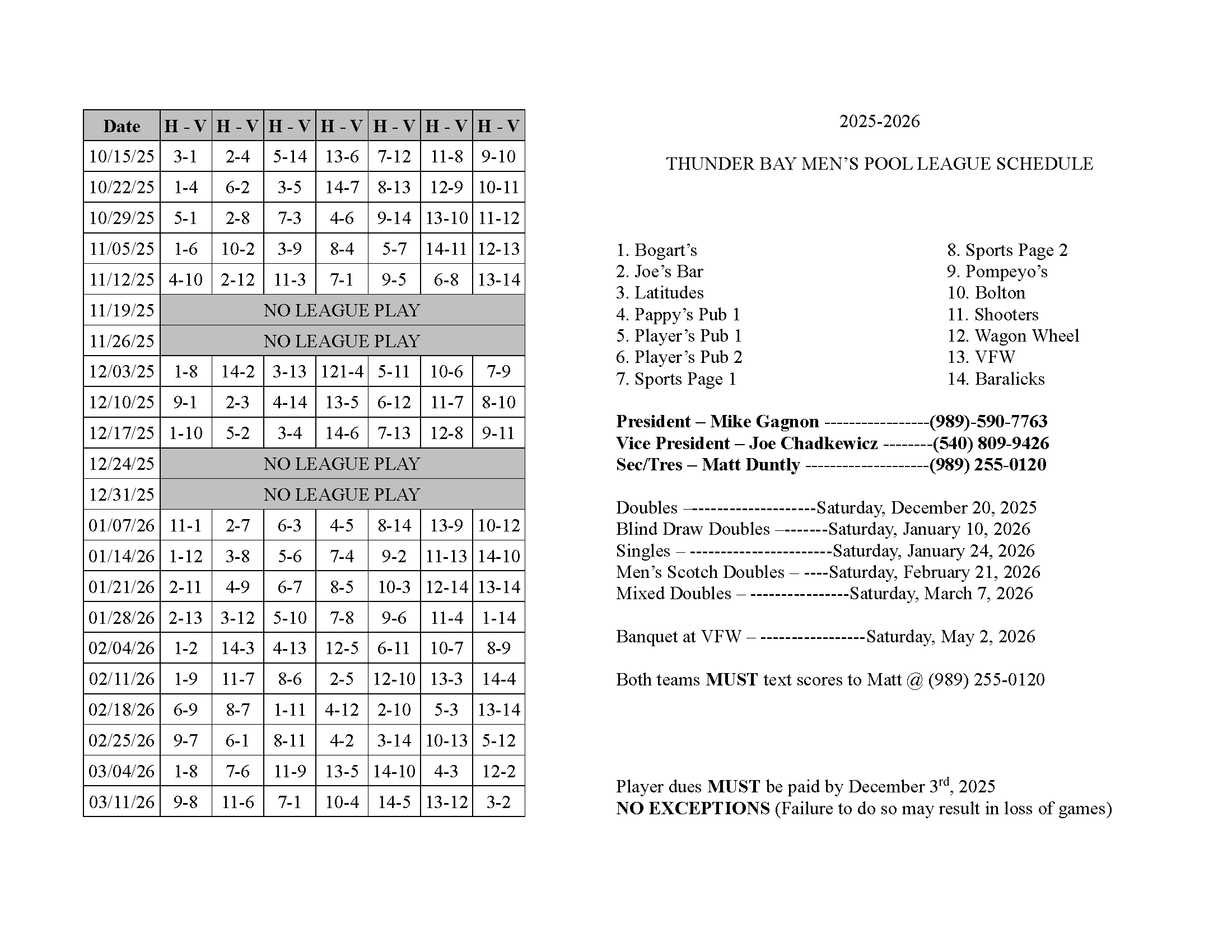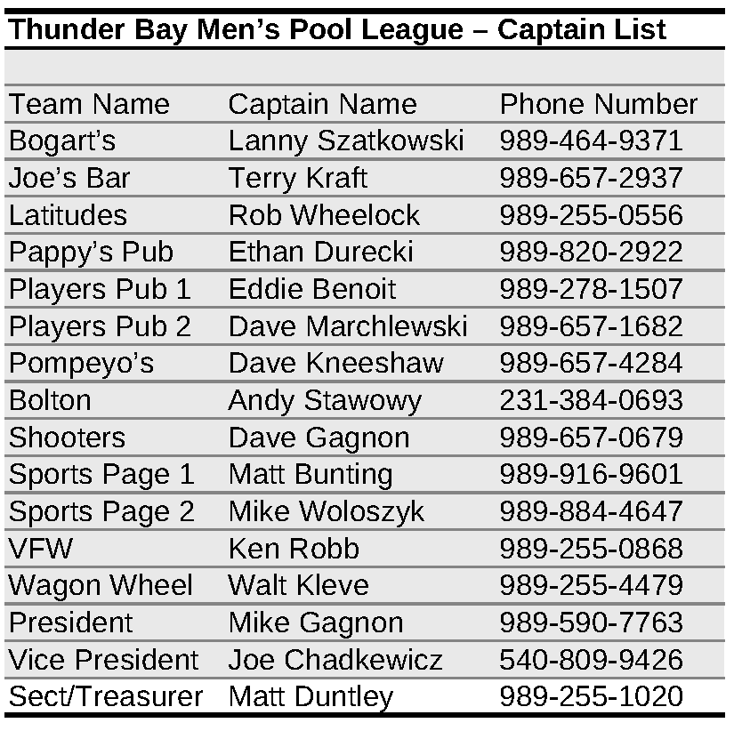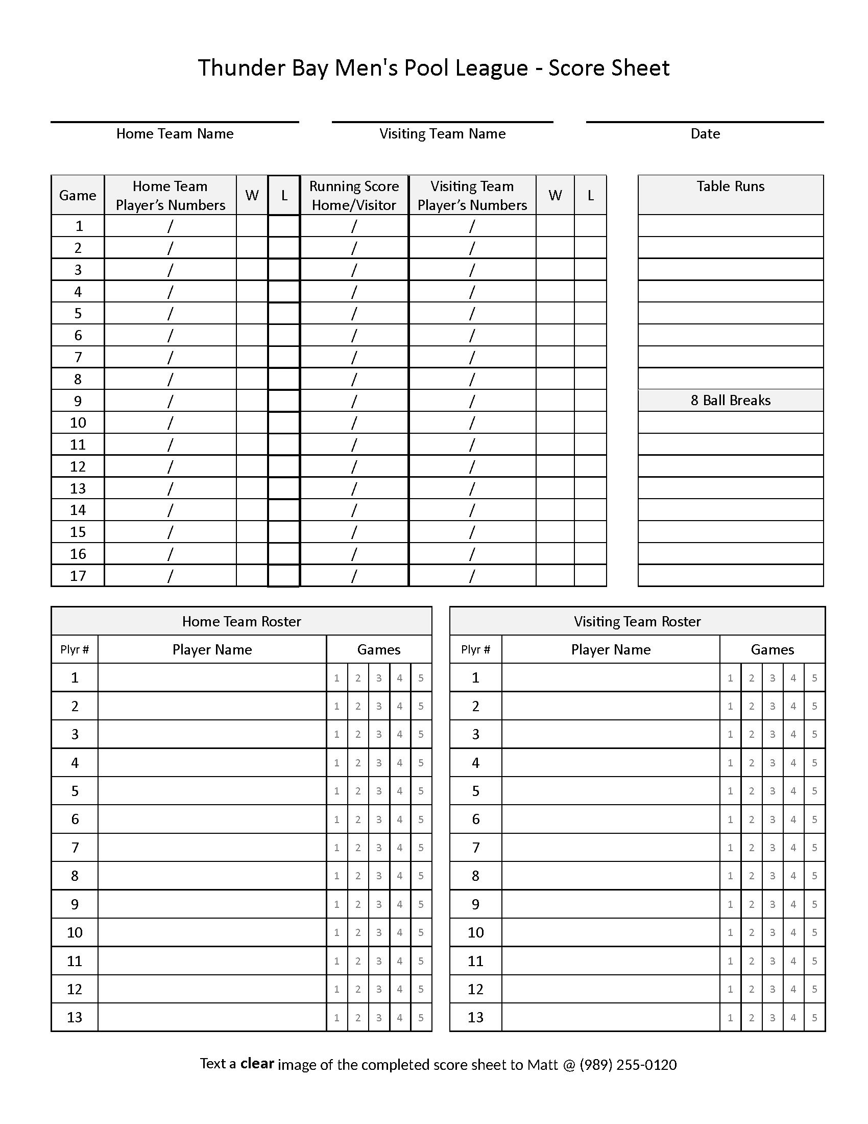 All captains should text a CLEAR image of their weekly score sheet to Matt 989-255-0120.