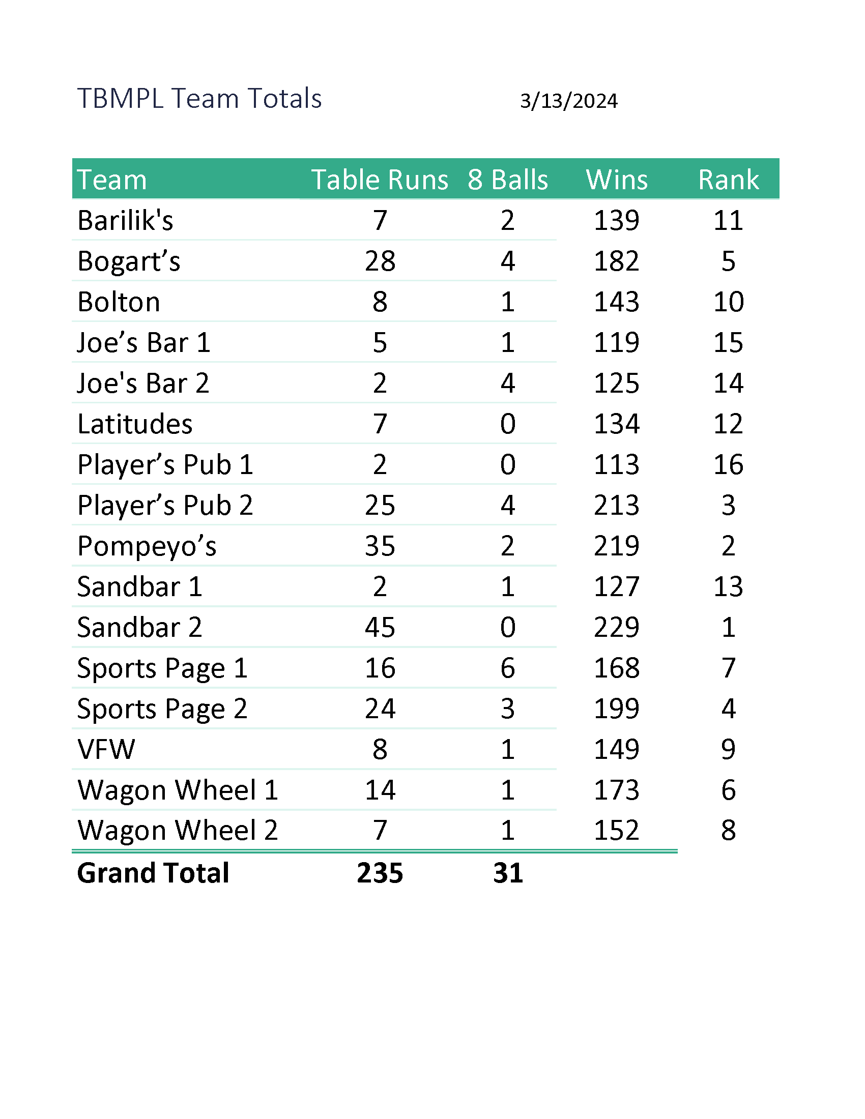 Not seeing latest standings! Clear your browser history and refresh this page.